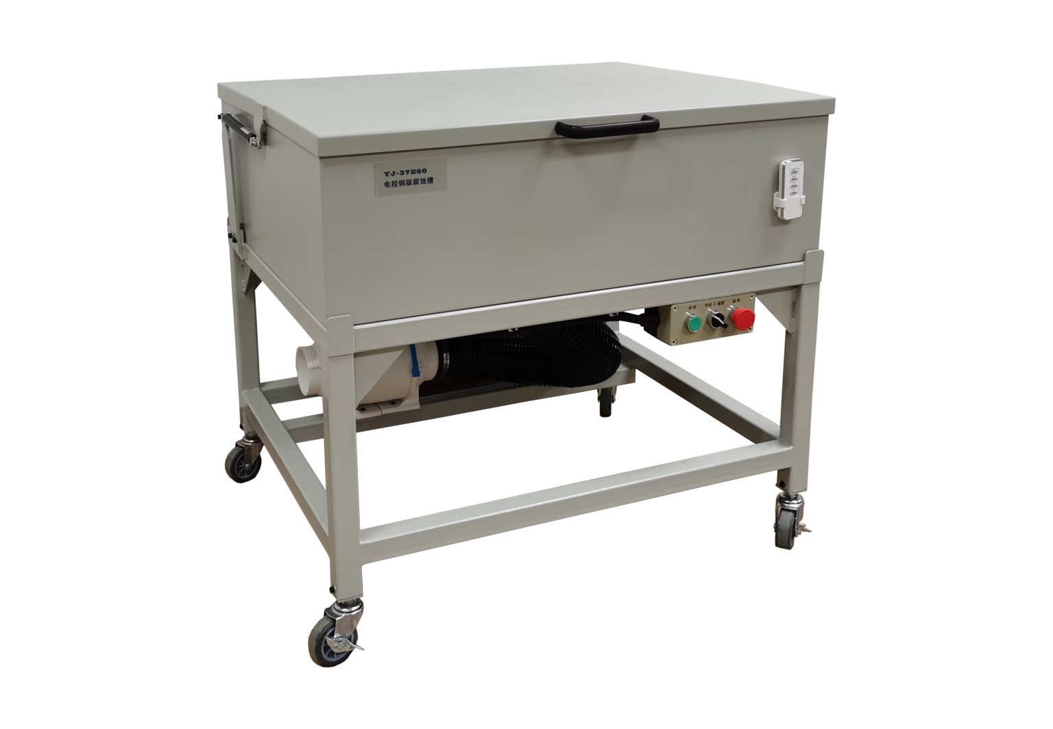 用于銅版畫制版腐蝕處理。內(nèi)置防腐材質(zhì)腐蝕槽,負(fù)壓全封閉式結(jié)構(gòu),外置腐蝕液排放開關(guān),強(qiáng)風(fēng)靜音防水風(fēng)機(jī)與外接風(fēng)管連接對(duì)腐蝕液氣進(jìn)行處理, 無線遙控控制。