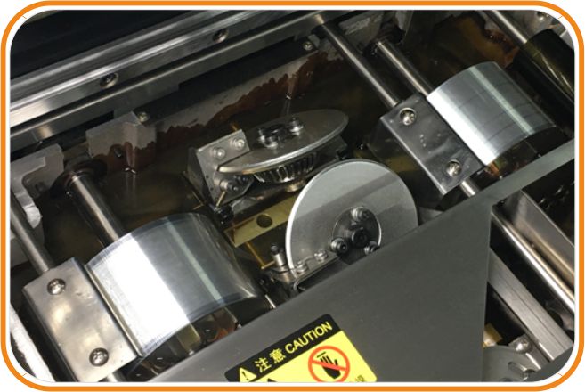 書芯放入夾書器,即可自動檢測書芯厚度,并實時完成所有工位的定位調(diào)整,無需人工干預。操作區(qū)設有外紅檢測安全裝置。