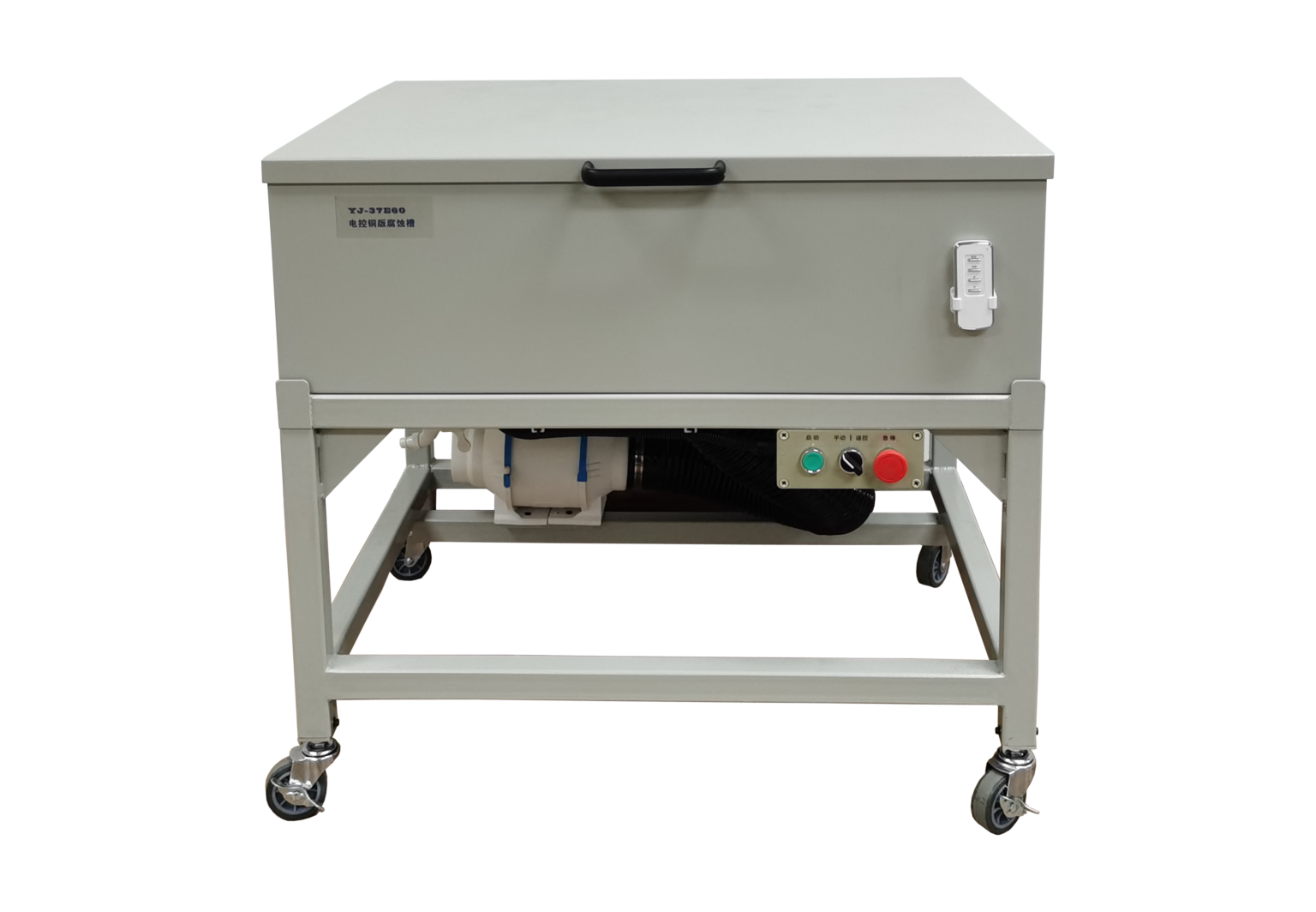 用于銅版畫制版腐蝕處理。內(nèi)置防腐材質(zhì)腐蝕槽,負(fù)壓全封閉式結(jié)構(gòu),外置腐蝕液排放開關(guān),強(qiáng)風(fēng)靜音防水風(fēng)機(jī)與外接風(fēng)管連接對(duì)腐蝕液氣進(jìn)行處理, 無線遙控控制。