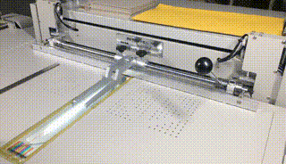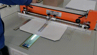 制作臺歷架演示 在SK840A書殼機上更換定位擋塊,就可快速批量完成標準臺歷架的制作。 |