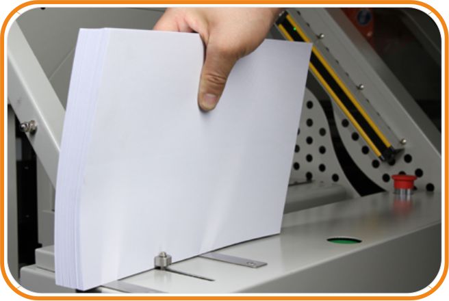 書芯放入夾書器,即可自動檢測書芯厚度,并實時完成所有工位的定位調(diào)整,無需人工干預。操作區(qū)設有外紅檢測安全裝置。